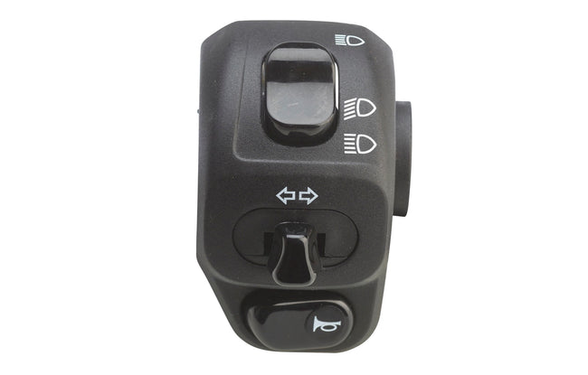 Shell material: Tecnopolymers Finish: Black Side: Left Wiring: Yes Wire Lenght: 660 mm Connector: AMP 10 positions with male connectors and two female terminals Functions: Horn, turn signals, high-beam / low-beam / flash switch